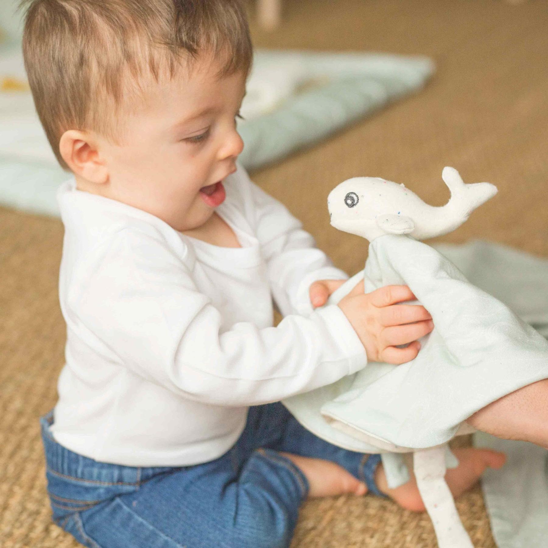 Perfect for providing a sense of security, this comfort blanket accompanies early discoveries and cuddling moments, helping to establish a reassuring routine. It is a true daily ally that promotes calmness and emotional development for the youngest ones.