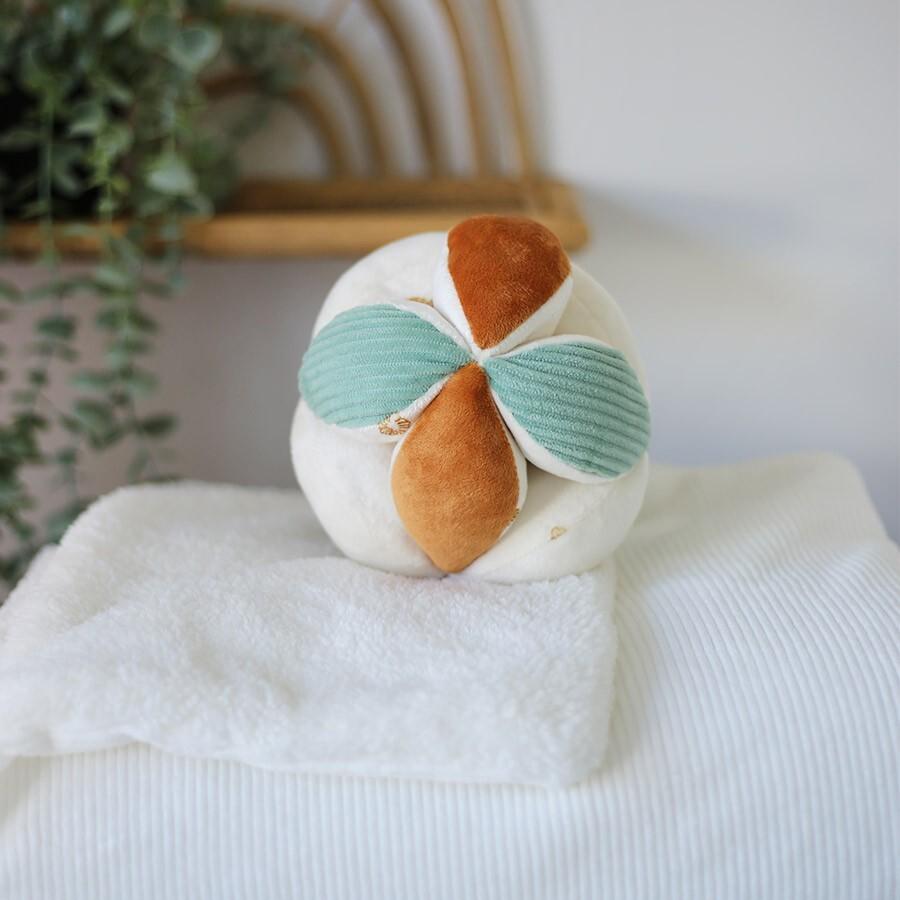 The different materials used invite touch and encourage sensory discovery. Moreover, the round and lightweight shape of this ball makes it easy to grip even for small hands that are still clumsy, helping to boost the confidence of little ones in their motor skills.