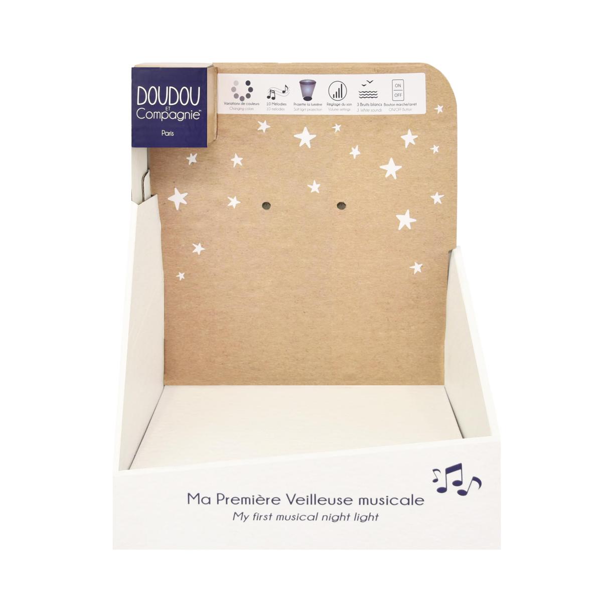 Give your child peaceful, reassuring nights with the Doudou & compagnie rabbit musical nightlight. When switched on, elle will diffuse luminous stars on walls and ceilings, creating a magical, soothing atmosphere. Order this product now in the toys and games category and give your child an adorable and practical sleeping companion.