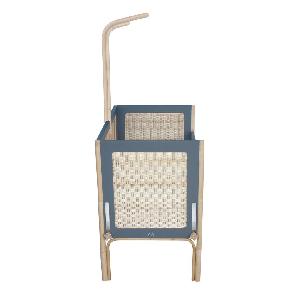 This uniquely designed crib can be used as a co-sleeper: it attaches to the parents' bed, and its mattress base and side are height adjustable with two safety buttons. It can therefore serve both as a co-sleeper and an independent crib. Its two wheels make it easy to move from one room to another. The legs and posts are made from natural rattan cane, the frame is made from MDF, and the head and foot of the bed feature a beautiful woven natural rattan panel. It is designed for a rectangular mattress measuring 50 x 83 cm (not included). It comes with a detachable bed canopy (veil not included). Why buy Théo Bébé? - Natural and durable materials (wood, rattan) - Evolving beds - Soft-close doors and drawers - Odourless, solvent-free water-based paints and varnishes - Cardboard packaging, no plastic - All rattan parts are handmade - Complies with French and European standards - Durable, high-quality furniture - All hardware in stainless steel - 3-year warranty - French designs